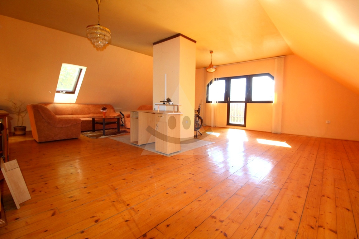 - podkrovie rozdelené na 2 otvorené časti, a z jednej je výstup na priestranný balkón